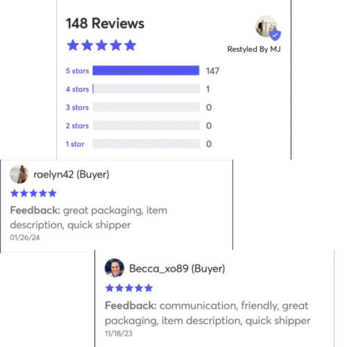 Discover the excellence that customers love! With a consistent track record of 5-star reviews, my reselling stores have earned trust and satisfaction. Join countless happy customers and experience the quality that defines my curated selections.